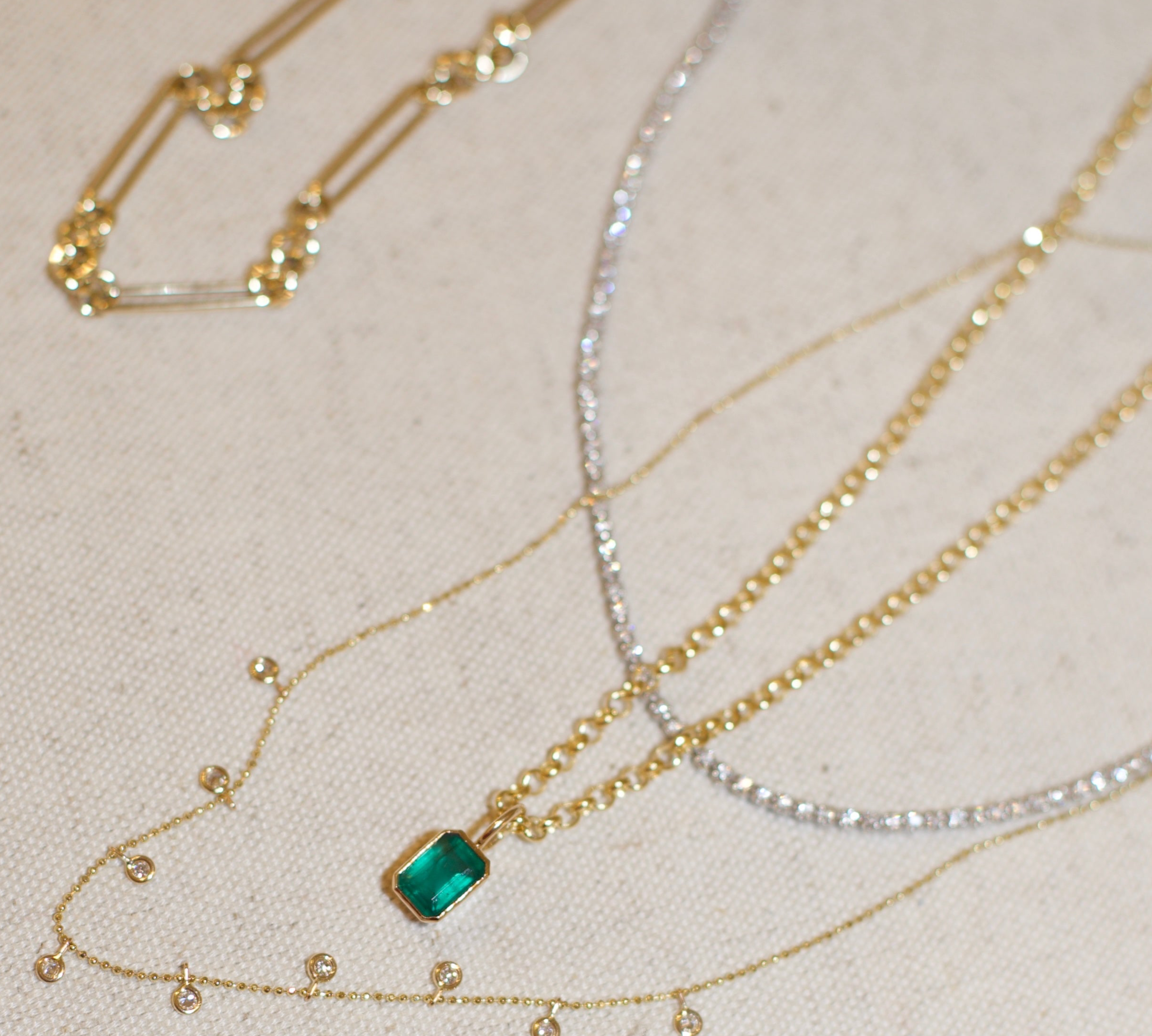 A special edition of our Little Cross Diamond Necklace with a center emerald to represent those impacted by the Texas Hill Country floods and the Camp Mystic tragedy.
