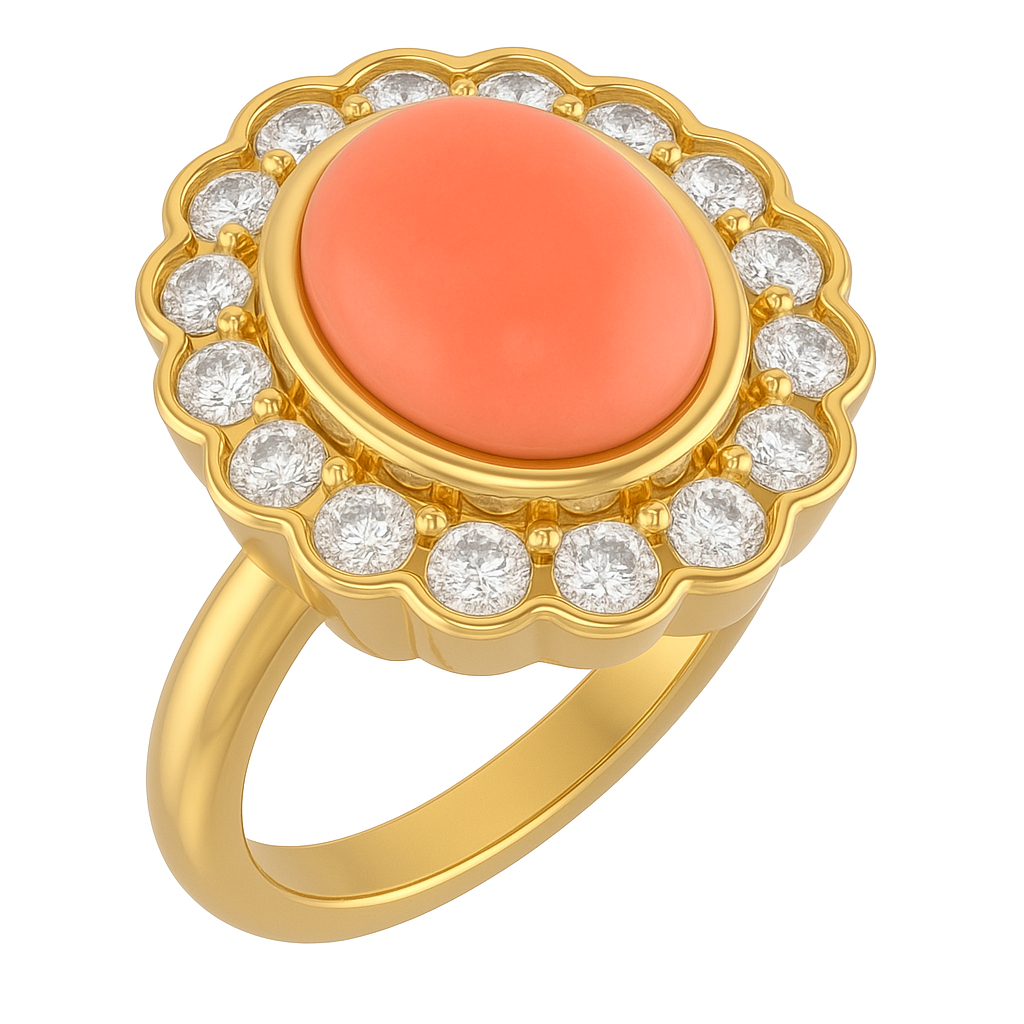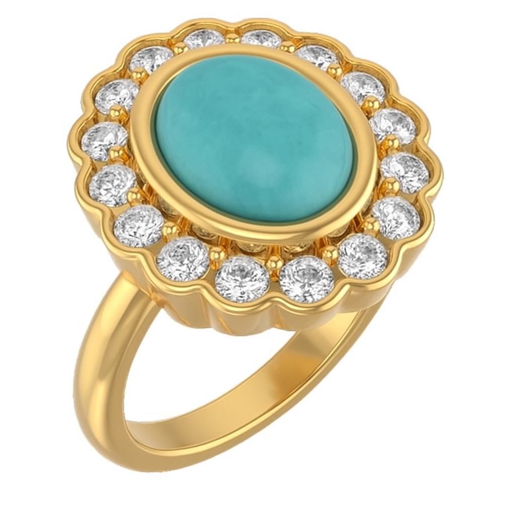 The Holiday Ring features a 10x8mm natural cabochon gemstone, surrounded by 2.5mm diamonds of your choice, natural or lab.