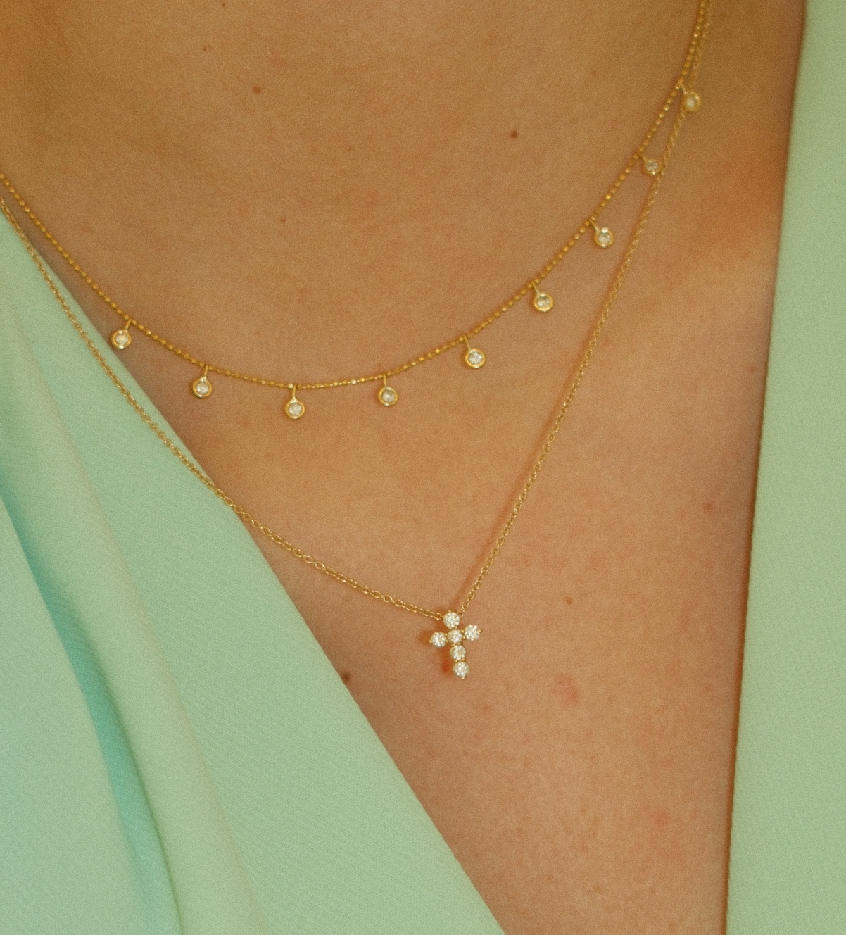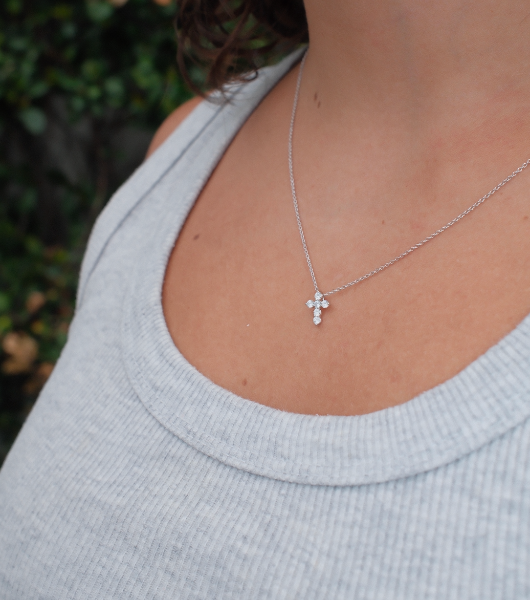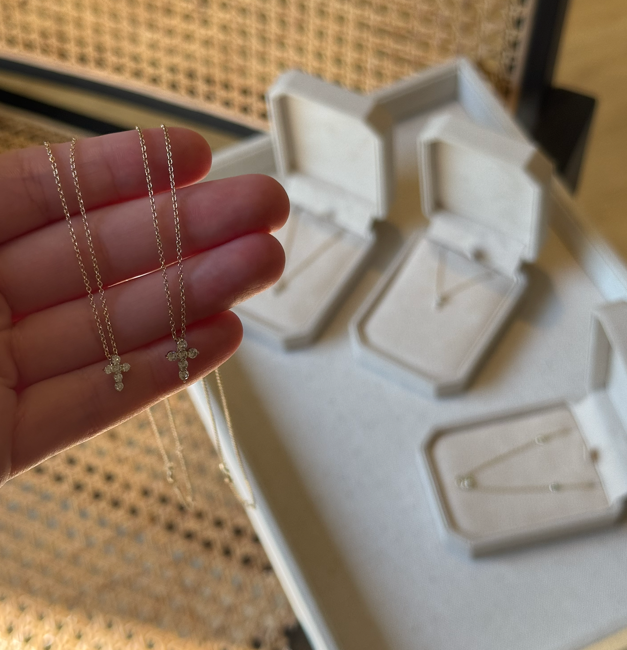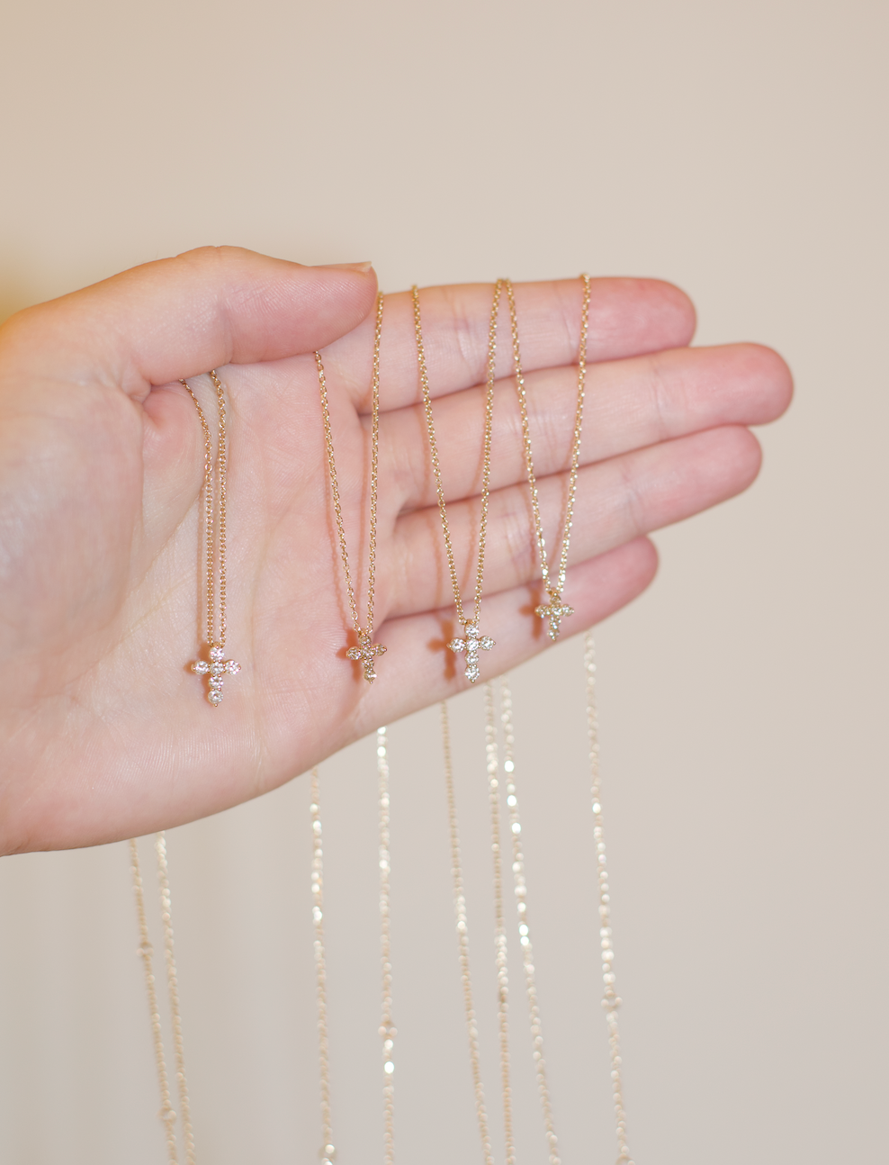 As seen on Hailey Drew Polk — our Little Cross Diamond Necklace is everyday sparkle with meaning. Can be customized with any diamonds or gemstones.